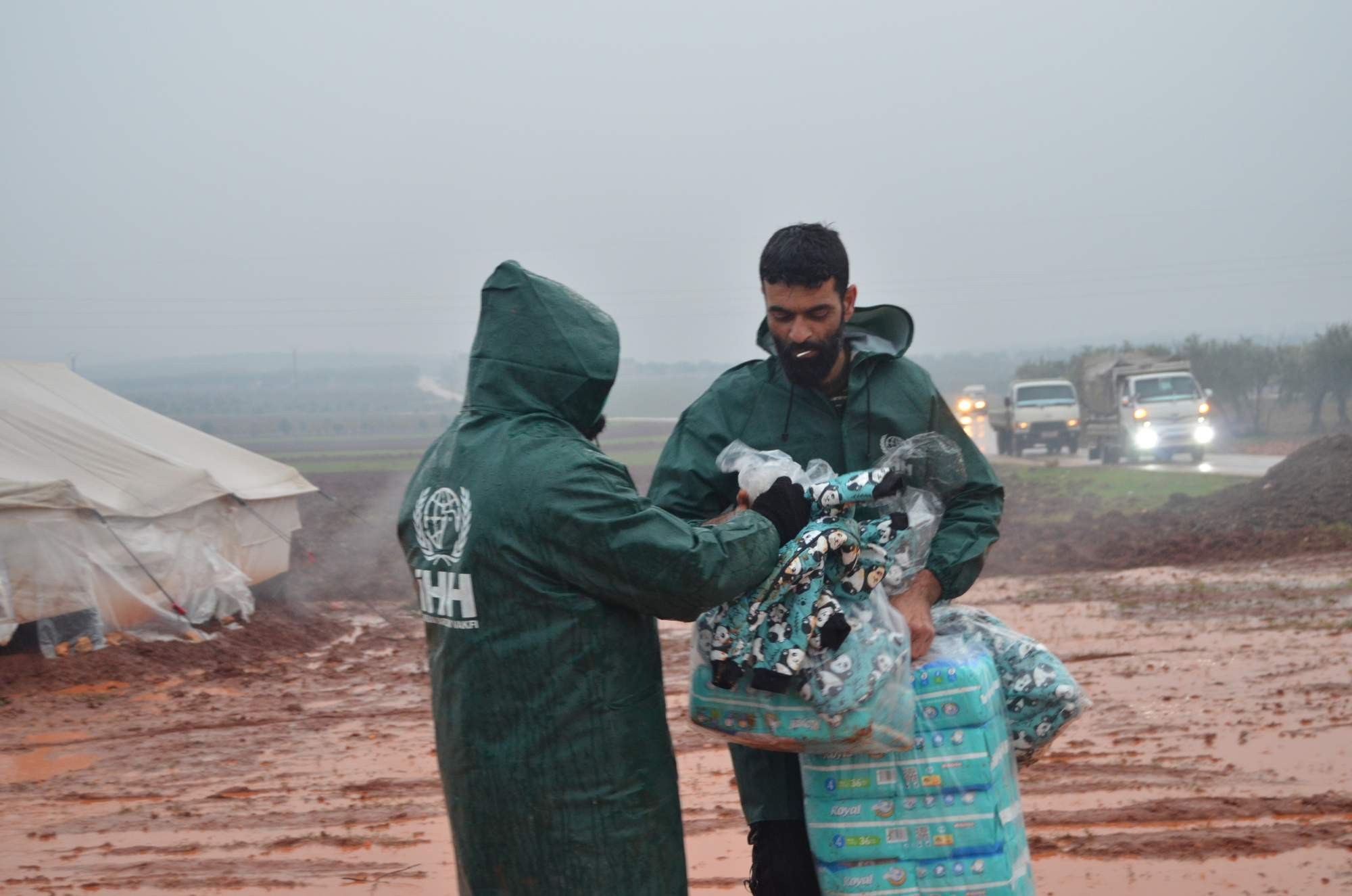 توزيع 300 عازل مطري خارجي على 293 عائلة في أربع مخيمات شمال إدلب